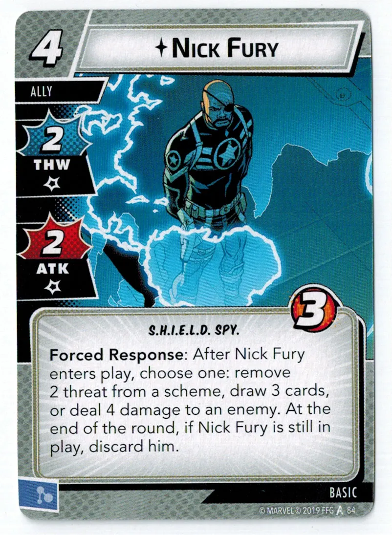 Nick Fury is a staple from the core set that costs 4 resources to play and draws 3 cards. Some players claim he costs 2 equivalent resources. And that’s where I disagree and the Captain too.