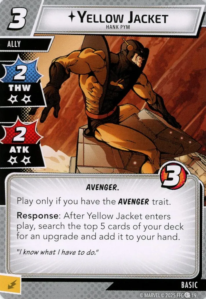 While both being teachers at the Academy, Hank and Greer developed a romantic relationship which ended while being pregnant with future William Nelson. Why Nelson and not Pym? Greer chose to raise William alone. The story gets complicated with Skrull affairs… In the end, Hank becomes William’s godfather, and Nadia “The Wasp” recognizes him as her half-brother. A modern family in all its complexity. The card reflects a tinkerer character, being able to pull the right toy at the right time.